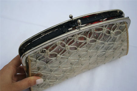 ארנק, ארנק פלסטיק מעוצב, בד טאפט אדום, חוט דמוי זהב, 2002