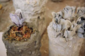פרחים מיובשים יצוקים בטון, יוצרת אזכור לאתר אשפה גדול