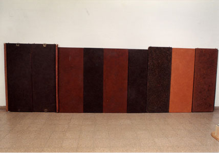 All Entrances, 156x59x3 cm, 9 wooden wardrobe doorsm various types of soil, 1997 - 1998